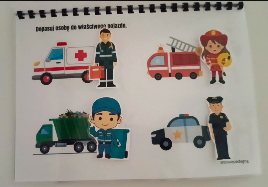 ✔️ Łączenie osób z odpowiednim pojazdem (np. strażak – wóz strażacki)